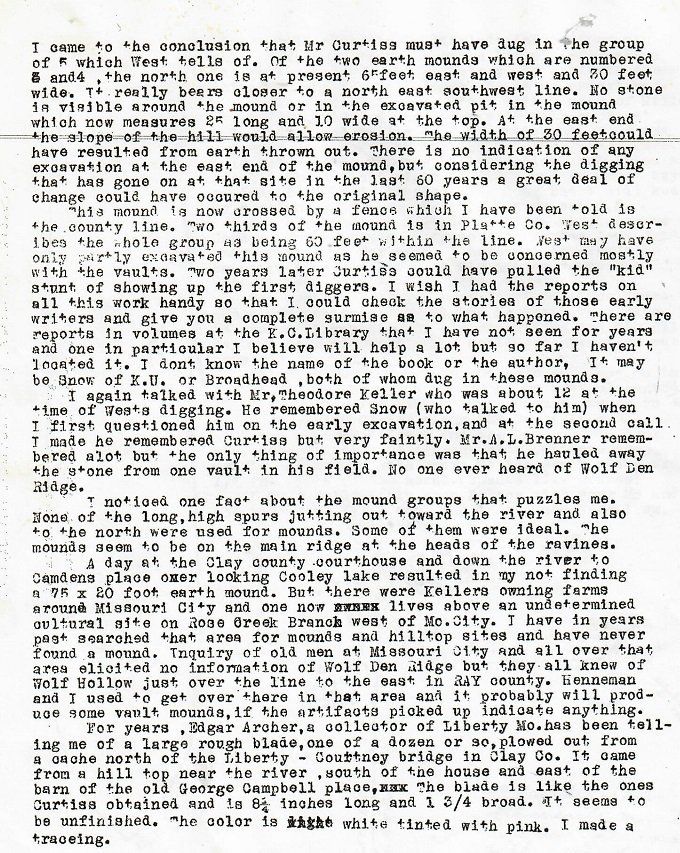 Through his simple excavation, he was able to draw a conclusion the Renner farm was connected with the mounds. He also concluded the farm was once a village. That summer, he further investigated the remaining known mounds on the west side of the village on the bluffs.